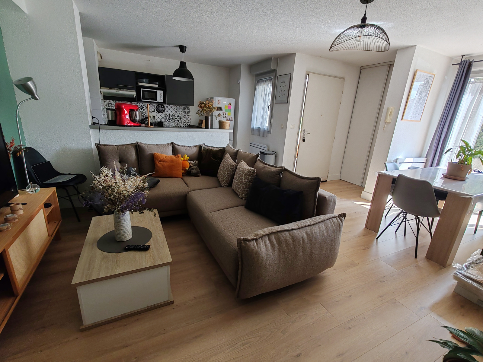 Séjour lumineux avec cuisine équipée