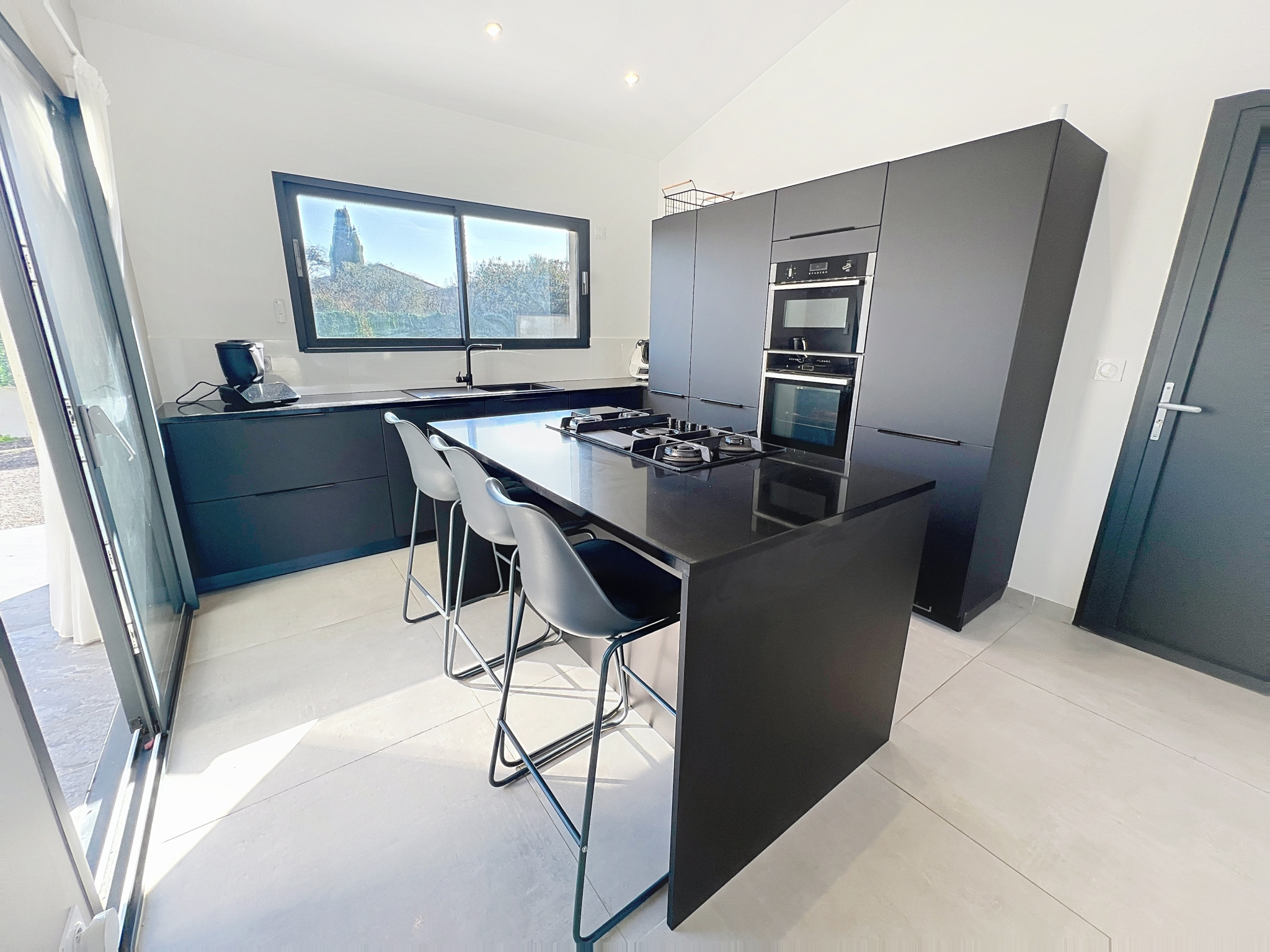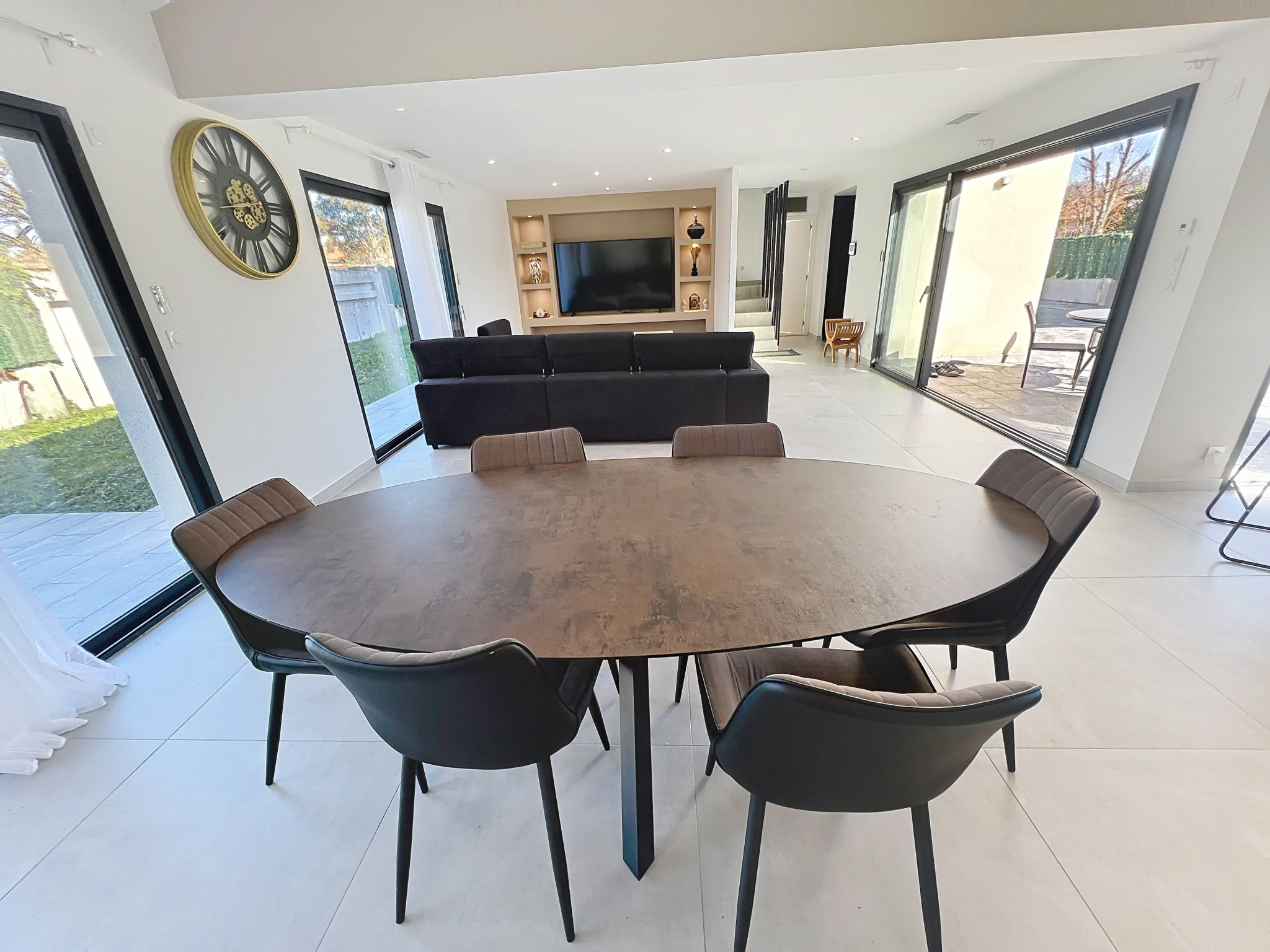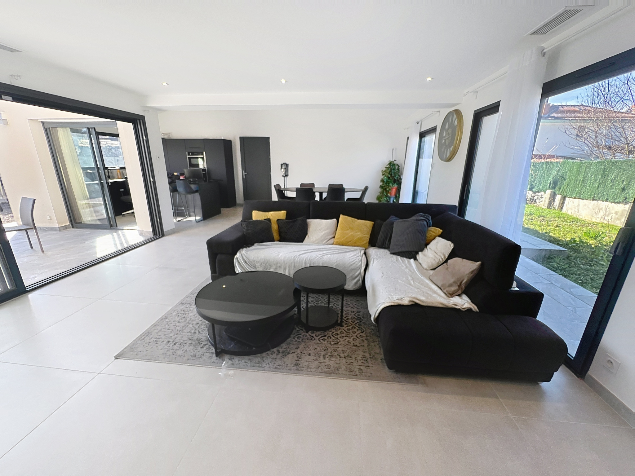 Menuiseries aluminium avec larges baies vitrées et volets roulants motorisés